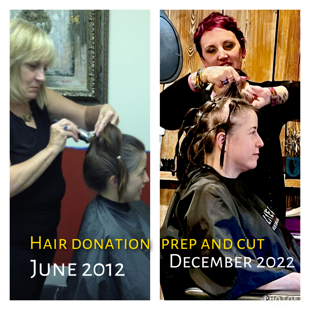 So, I stopped cutting my hair for a year and planned to shave and donate my hair. I know how much having a wig (I called my wig, Junior) meant for me. Losing my hair the first time was traumatic. I did not have a choice, though, if I was going to go through with treatment. Even if I did not shave it, I was going to lose my hair.